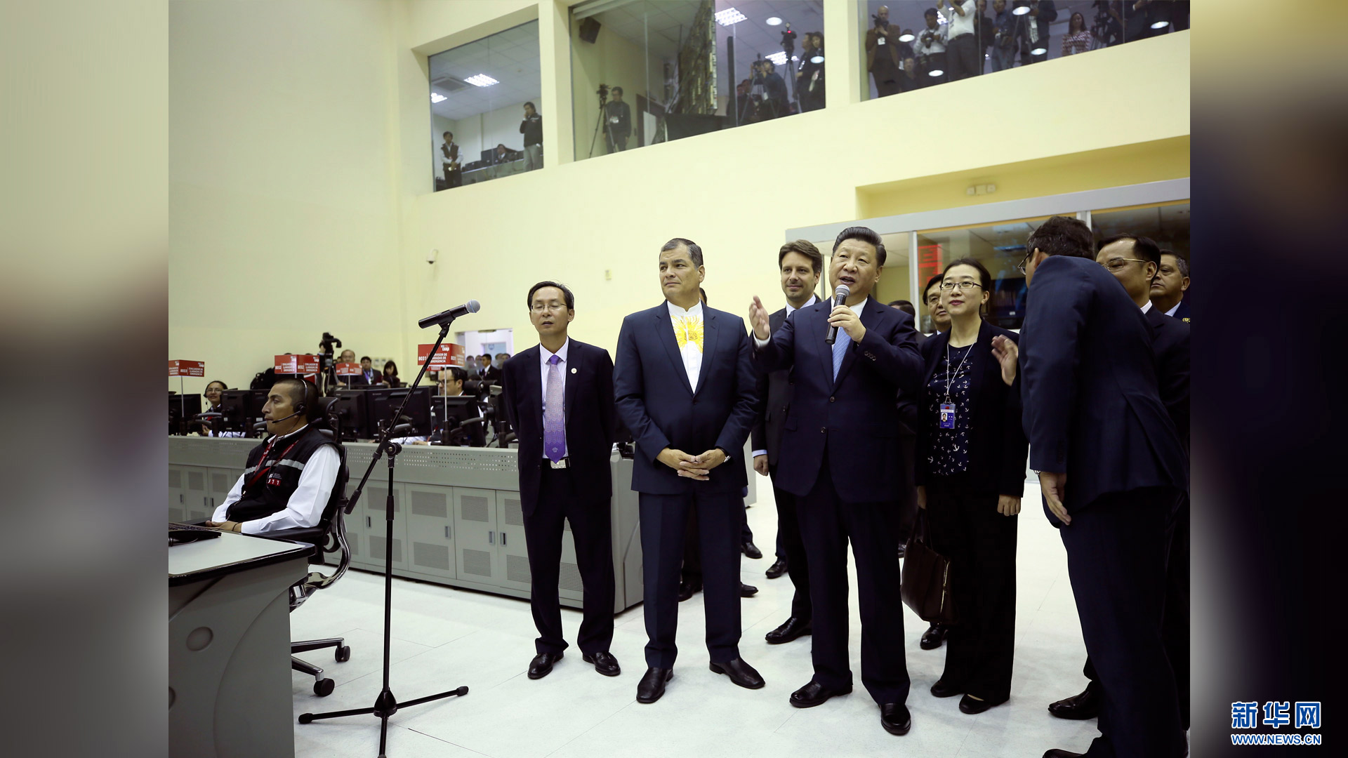 當?shù)貢r間11月18日,國家主席習(xí)近平在基多同厄瓜多爾總統(tǒng)科雷亞共同出席中方援建的厄瓜多爾公共安全應(yīng)急指揮中心聯(lián)合實驗室揭牌儀式,喬內(nèi)醫(yī)院奠基、科卡科多-辛克雷水電站竣工發(fā)電視頻連線活動。這是習(xí)近平出席活動后致辭。新華社記者 馬占成 攝2016-11-19