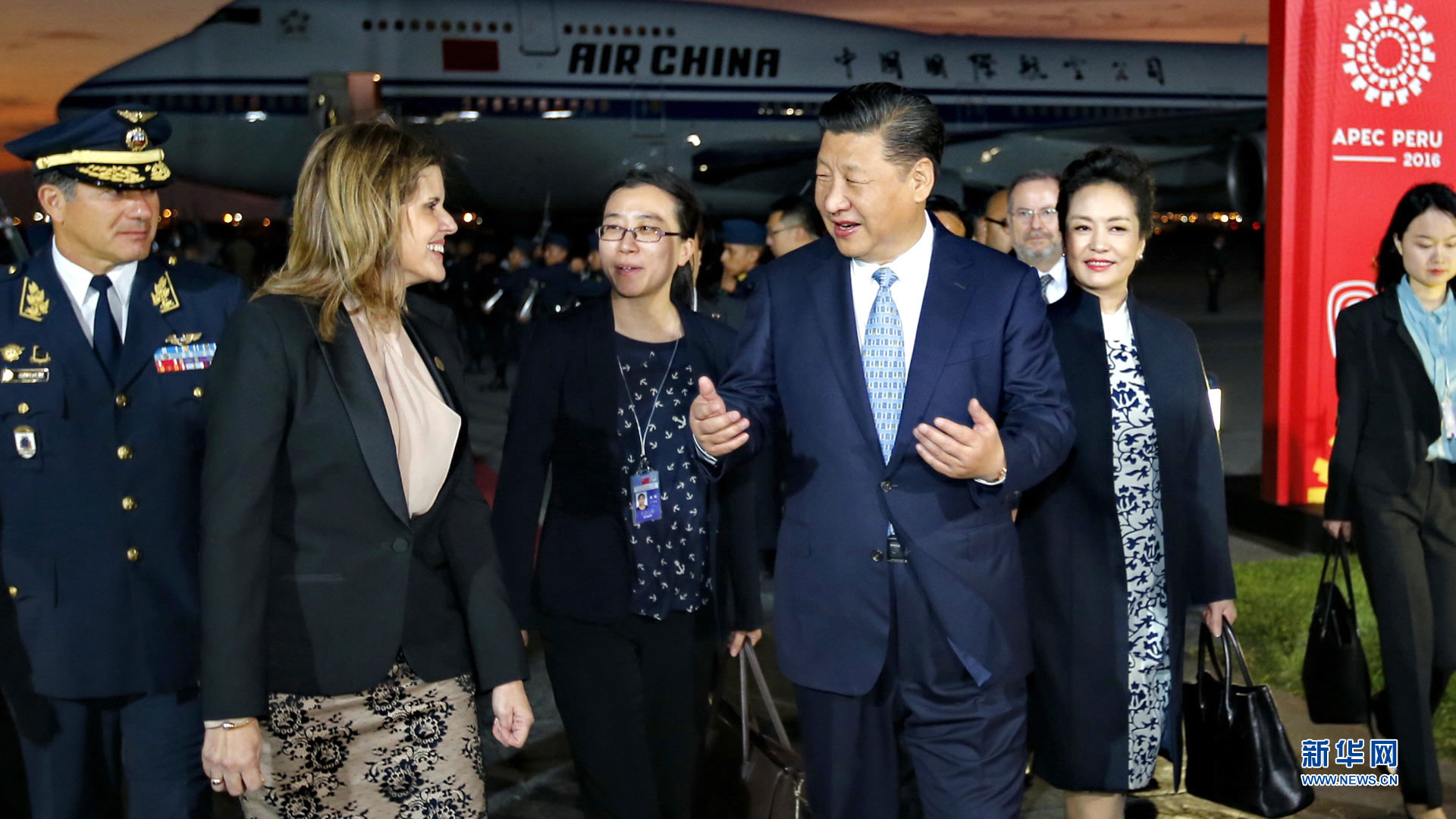當?shù)貢r間11月18日,國家主席習(xí)近平抵達利馬,出席亞太經(jīng)合組織第二十四次領(lǐng)導(dǎo)人非正式會議并對秘魯共和國進行國事訪問。習(xí)近平和夫人彭麗媛受到秘魯副總統(tǒng)阿勞斯等熱情迎接。新華社記者 丁林 攝2016-11-20