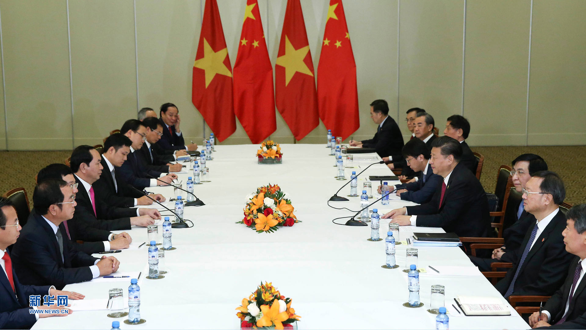 11月19日,國家主席習(xí)近平在利馬會見越南國家主席陳大光。新華社記者 龐興雷 攝2016-11-20