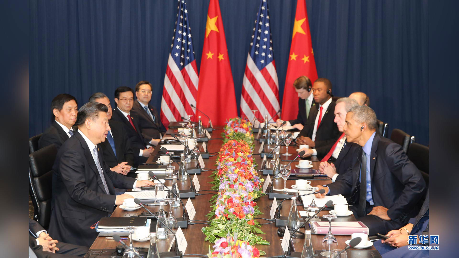 11月19日,國家主席習(xí)近平在利馬會見美國總統(tǒng)奧巴馬。 新華社記者丁林 攝2016-11-20