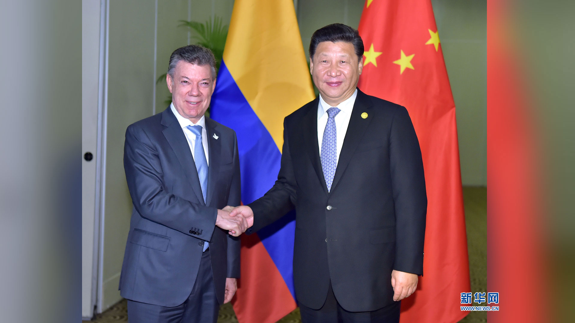 11月19日,國家主席習(xí)近平在利馬會見哥倫比亞總統(tǒng)桑托斯。新華社記者 龐興雷 攝2016-11-20