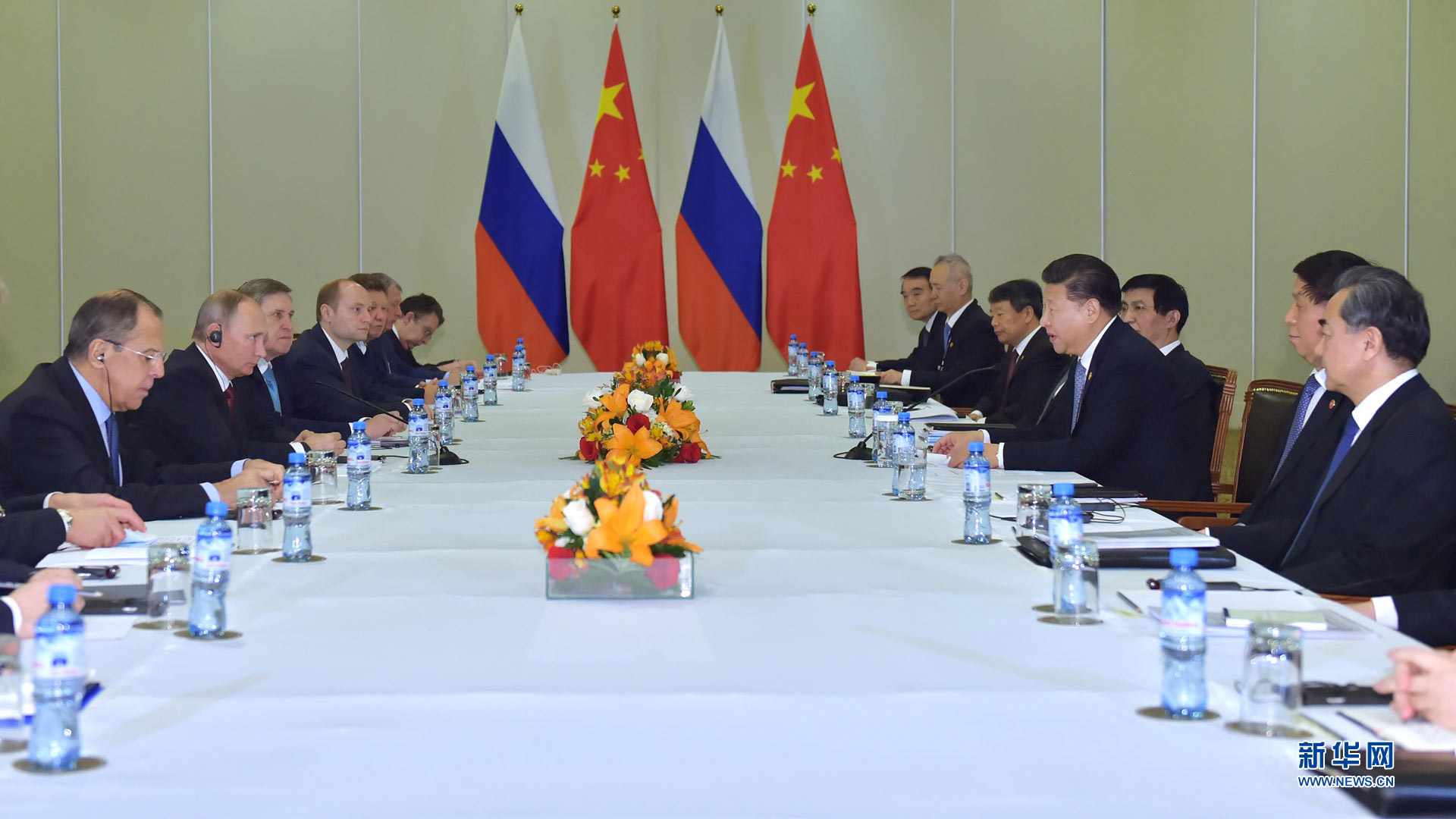 11月19日,國家主席習(xí)近平在利馬會見俄羅斯總統(tǒng)普京。 新華社記者李濤 攝2016-11-20