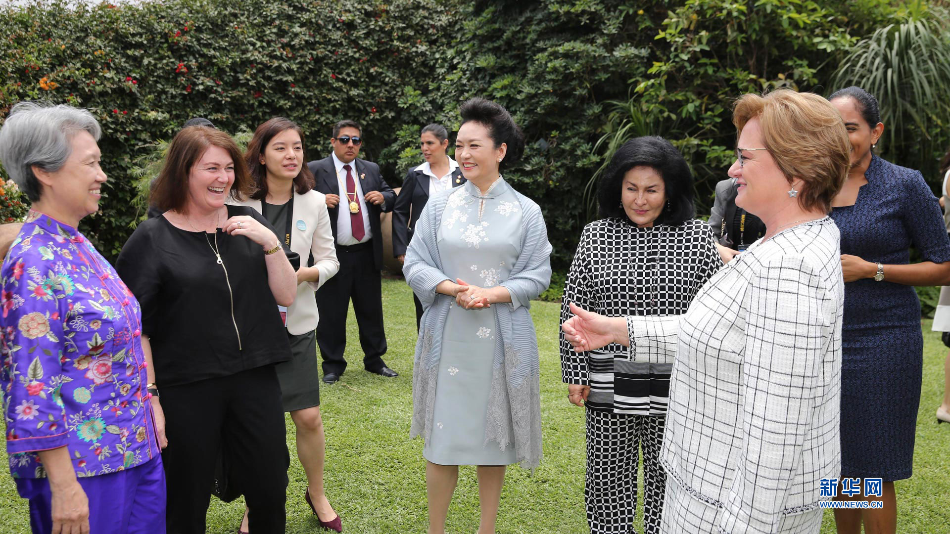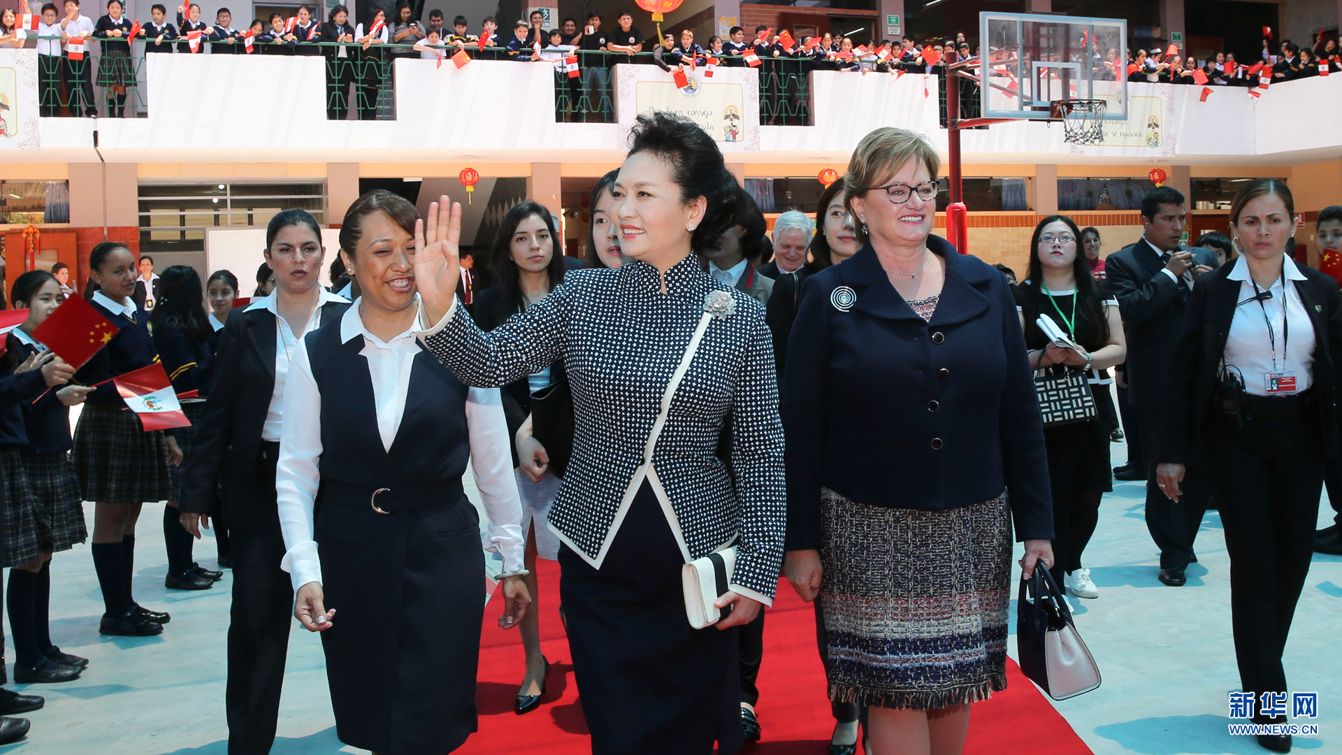 11月21日,國家主席習(xí)近平夫人彭麗媛在利馬參觀若望二十三世秘中學(xué)校。 新華社記者丁林攝2016-11-22