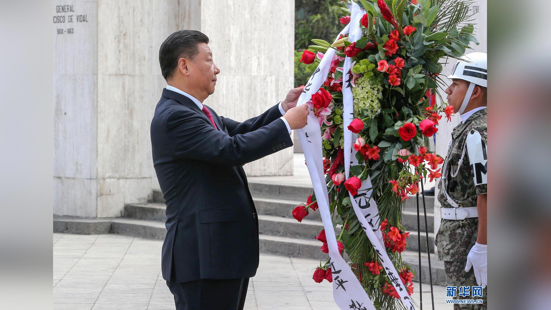 11月21日,國家主席習(xí)近平在利馬同秘魯總統(tǒng)庫琴斯基舉行會談。會談前,在庫琴斯基夫婦陪同下,習(xí)近平和彭麗媛向秘魯獨立先驅(qū)紀念碑敬獻花圈。新華社記者 丁林 攝2016-11-23