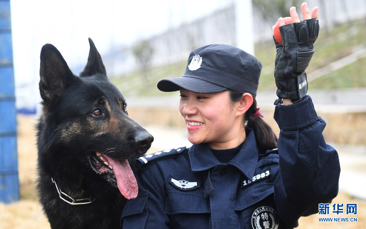 2月5日,劉慧和“威利”在警犬基地玩耍。劉慧是武漢鐵路公安局襄陽公安處警犬工作隊(duì)的一名民警,“威利”是一只2013年出生的德國牧羊犬,經(jīng)過嚴(yán)格訓(xùn)練后擔(dān)任搜爆犬。劉慧和“威利”自2013年起開始了朝夕相處的生活,今年春運(yùn)是劉慧和“威利”一起搭檔值勤的第四個(gè)春運(yùn)。春運(yùn)期間,劉慧和“威利”每天都要進(jìn)駐襄陽火車站開展安保巡邏工作,共同保障春運(yùn)安全。 新華社記者 程敏 攝