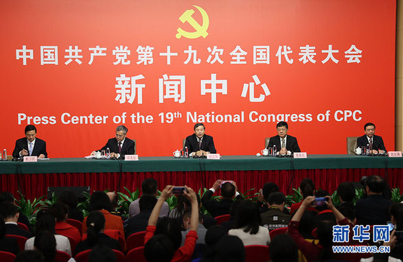 10月20日,十九大新聞中心舉行記者會(huì),邀請(qǐng)中宣部、中央文明辦、文化部、新聞出版廣電總局相關(guān)負(fù)責(zé)人介紹加強(qiáng)思想道德和文化建設(shè)情況,并回答記者提問。圖為記者會(huì)現(xiàn)場(chǎng)。新華網(wǎng) 郝廣鵬 攝