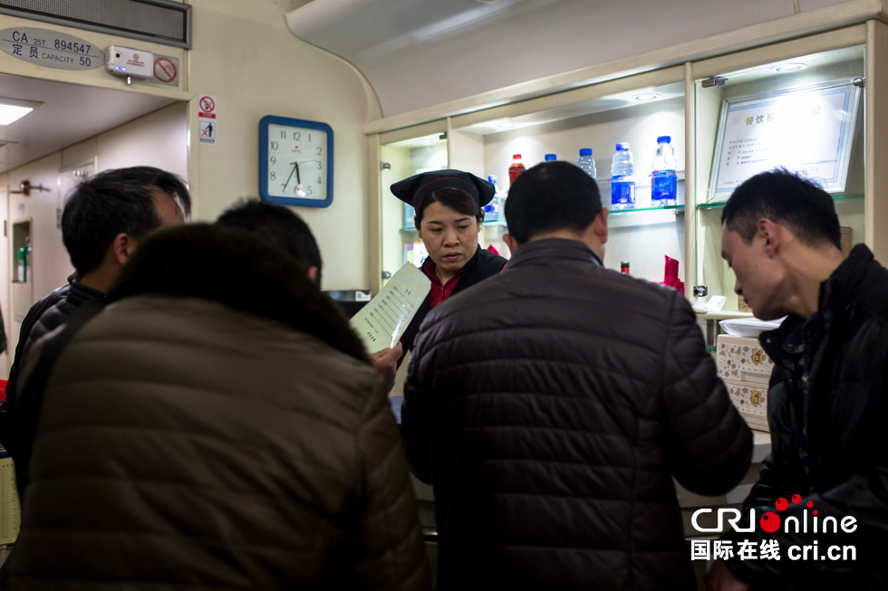 等列車行駛一段時間后,陸續(xù)有旅客來到餐車點餐。