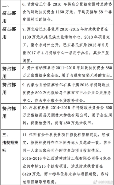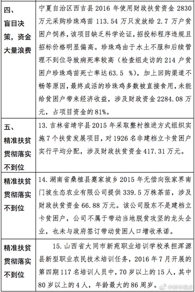“發(fā)現(xiàn)一起、查處一起、絕不姑息!”財(cái)政部監(jiān)督檢查局有關(guān)負(fù)責(zé)人指出,此次檢查發(fā)現(xiàn)了一批違法違規(guī)問題,本著“零容忍”態(tài)度已進(jìn)行了嚴(yán)肅處理。從檢查發(fā)現(xiàn)問題中的一些典型案例看,虛報(bào)冒領(lǐng)、擠占挪用、違規(guī)招投標(biāo)、盲目決策導(dǎo)致資金大量浪費(fèi)、精準(zhǔn)扶貧貫徹落實(shí)不到位是當(dāng)前濫用扶貧資金的主要問題所在。