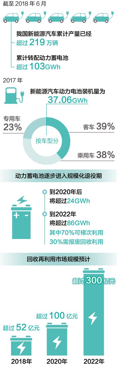 在政策和市場環(huán)境的雙重因素影響下,我國新能源汽車產(chǎn)量和保有量都已超全球總量的一半。據(jù)行業(yè)專家從企業(yè)質(zhì)保期限、電池循環(huán)壽命、車輛使用工況等方面綜合測算,2018年后,我國新能源動力蓄電池將進(jìn)入規(guī)?;艘燮冢A(yù)計2020年累計退役量將超過20萬噸。如果這些電池處置不當(dāng),一方面會給社會帶來環(huán)境影響和安全隱患,另一方面也會造成資源浪費。