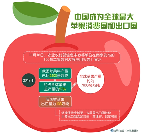 中國(guó)成為全球最大蘋(píng)果消費(fèi)國(guó)和出口國(guó) 新華社發(fā) 李棟 制圖