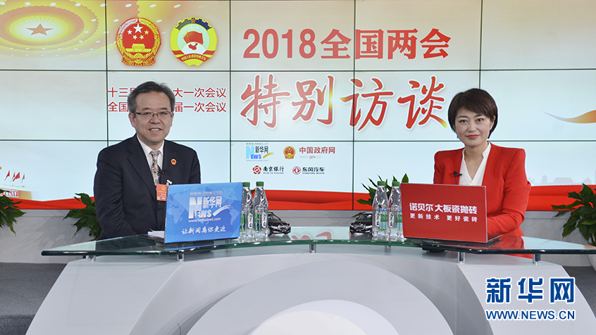 圖為15日,全國人大代表、酒泉市委書記吳仰東做客新華網(wǎng)2018全國兩會特別訪談。新華網(wǎng) 李相博攝