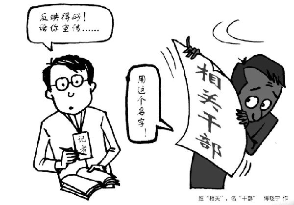 半月談?dòng)浾咴跂|部某省份采訪,隨機(jī)找到一名鄉(xiāng)鎮(zhèn)干部,了解農(nóng)村文化設(shè)施建設(shè)情況。記下這位干部的姓名職務(wù),半月談?dòng)浾邔?xiě)稿時(shí),地方卻來(lái)商量:先別提這位鄉(xiāng)鎮(zhèn)干部的名字,要在稿件里突出當(dāng)?shù)劓?zhèn)長(zhǎng)。