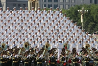 千人軍樂(lè)團(tuán)、合唱團(tuán)助威勝利日大閱兵