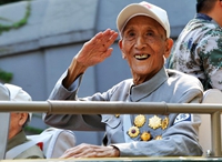 抗戰(zhàn)老同志乘車方隊(duì):國(guó)共兩黨抗戰(zhàn)老兵共同參閱