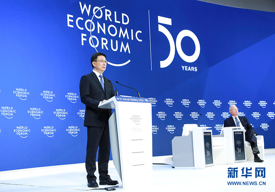 當(dāng)?shù)貢r(shí)間1月21日,中共中央政治局常委、國務(wù)院副總理韓正出席達(dá)沃斯世界經(jīng)濟(jì)論壇2020年年會,發(fā)表題為“共建開放型世界經(jīng)濟(jì) 推動(dòng)全球可持續(xù)發(fā)展”的致辭。 新華社記者 龐興雷 攝