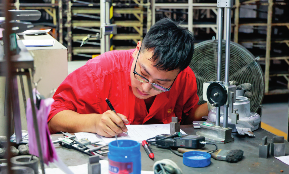 工作人员在江苏无锡滨湖区无锡锡南科技股份有限公司的生产车间进行质量控制作业(2025年9月16日摄) 刘佳琪摄 /本刊