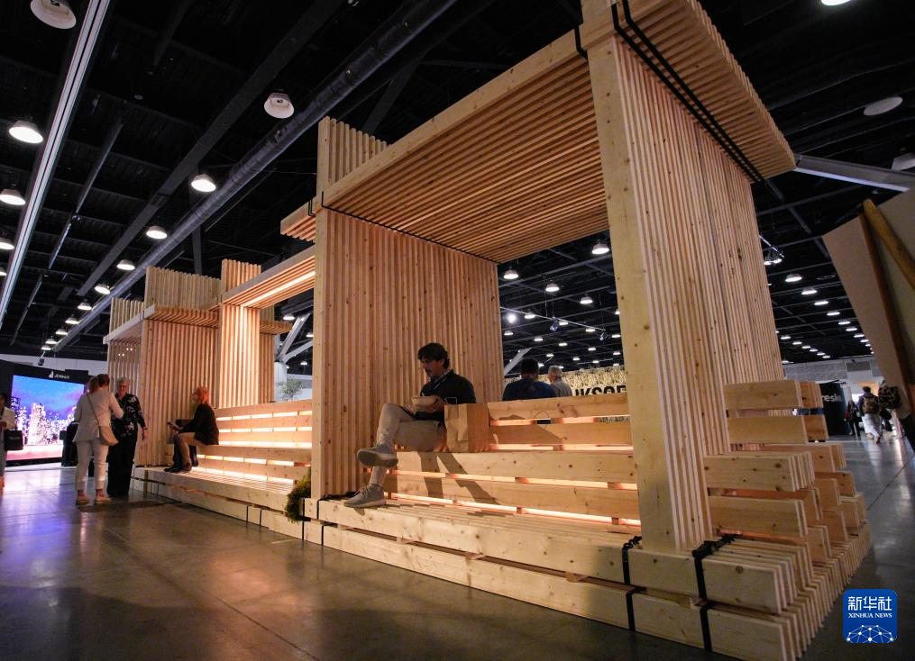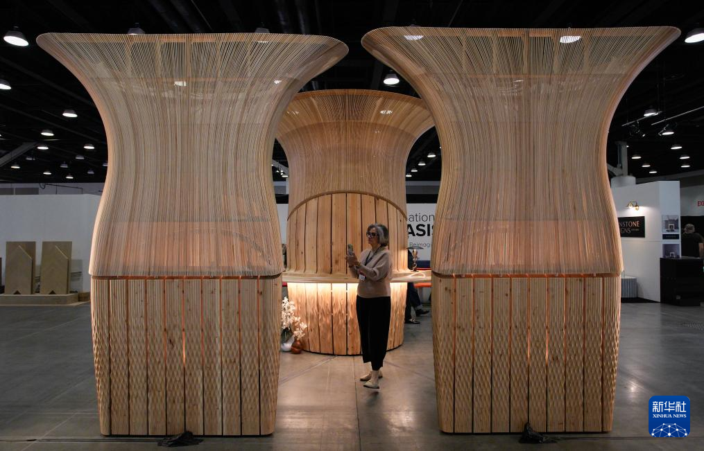 这是9月26日在加拿大温哥华2025年度室内设计展上拍摄的木质结构室内设计作品。