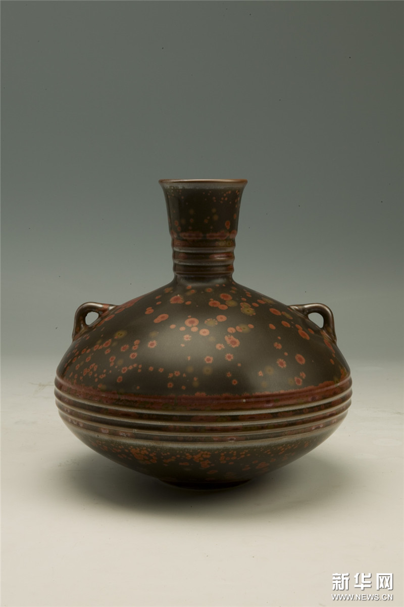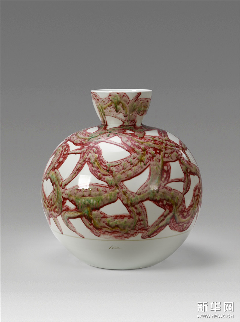 杨永善-铁红结晶釉弦纹瓶 瓷21.4×21.4×21.2cm 2006年 中国美术馆藏