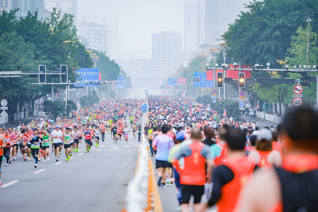 11月16日,2025中国人寿广安马拉松赛在四川省广安市賨城里鸣枪开跑。本届赛事以“共富思源 奔跑广安”为主题,设马拉松与半程马拉松两个项目,吸引全国各地1万余名选手参赛。