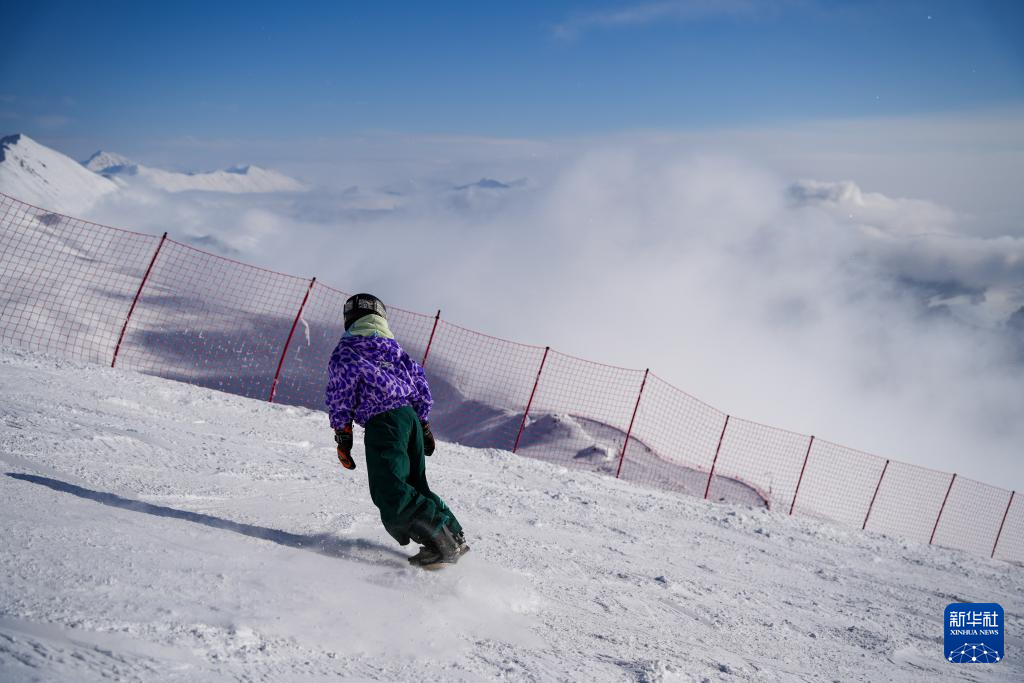 2月4日,滑雪爱好者在新疆阿勒泰地区禾木吉克普林国际滑雪度假区滑雪。
