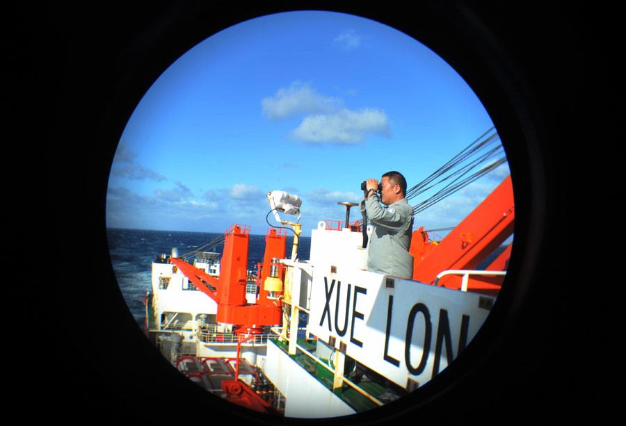 ????經(jīng)中國(guó)海上搜救中心同意,“雪龍”號(hào)科考船28日下午全速趕往澳大利亞海事安全局最新調(diào)整的搜尋區(qū),并將與“海巡01”會(huì)合,進(jìn)行中方船只現(xiàn)場(chǎng)指揮聯(lián)絡(luò)工作的交接。根據(jù)國(guó)際調(diào)查團(tuán)隊(duì)向澳方提出的建議,澳大利亞海事安全局28日調(diào)整了搜索部署,搜尋范圍發(fā)生較大改變。新華社記者張建松攝