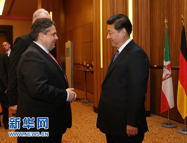 ??? 新華網(wǎng)德國杜塞爾多夫3月29日電(記者饒博文史哲)國家主席習(xí)近平29日在杜塞爾多夫會見德國副總理兼經(jīng)濟(jì)和能源部長、德國社會民主黨主席加布里爾。