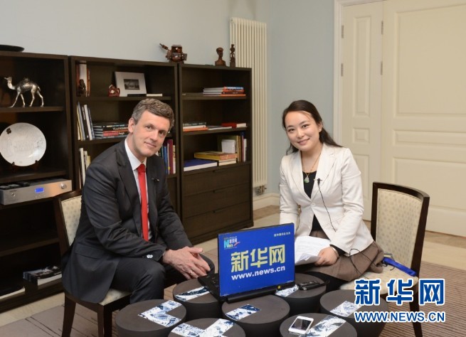 比利時王國駐華大使馬懷宇與新華網(wǎng)記者。新華網(wǎng)記者郭小天攝