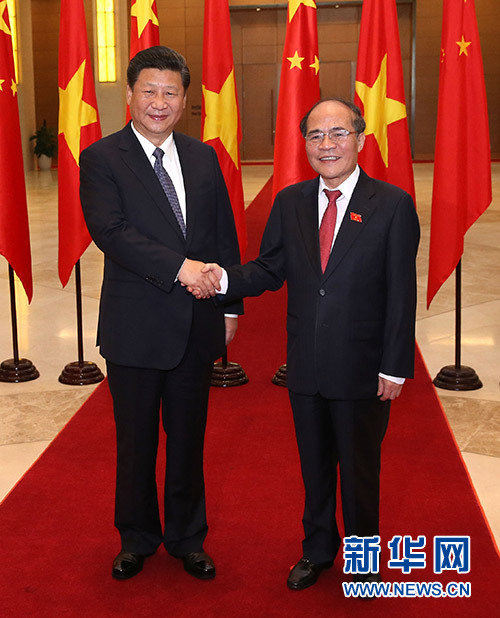 習近平高度評價中國全國人大和越南國會之間的友好交流合作。習近平指出,兩國立法機關(guān)在國家政治生活中發(fā)揮著重要作用,也是加強兩國人民相互了解和友誼的重要橋梁。期待兩國立法機關(guān)為夯實中越關(guān)系的民意基礎(chǔ)作出更大貢獻。習近平向阮生雄介紹了中國社會主義民主和法治建設(shè)有關(guān)情況。