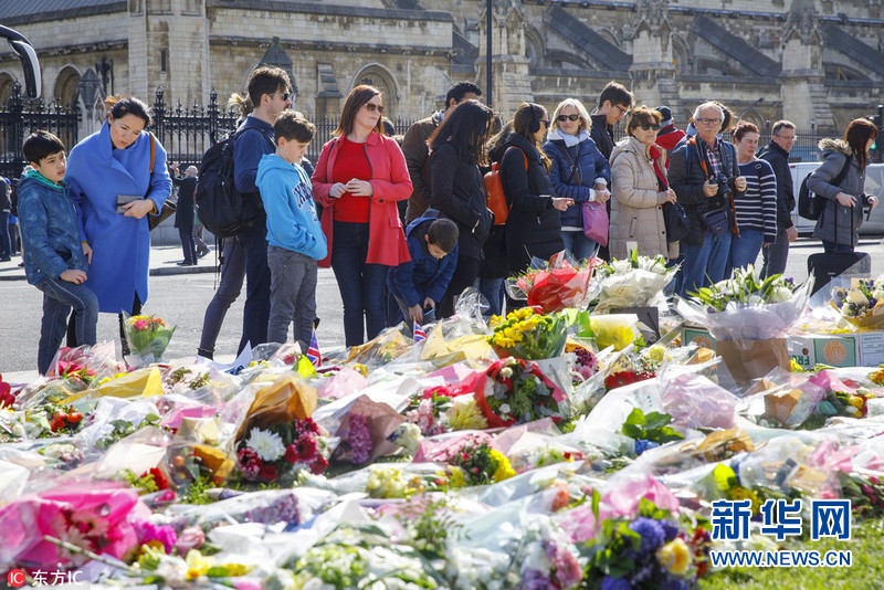 英國民眾在議會外擺放鮮花 哀悼恐襲受害者(組圖)