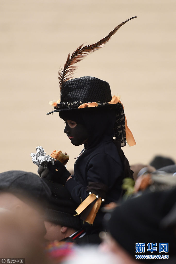 英國小鎮(zhèn)慶?!暗静菪堋惫?jié) 民眾跟隨草人盡情舞動(dòng)
