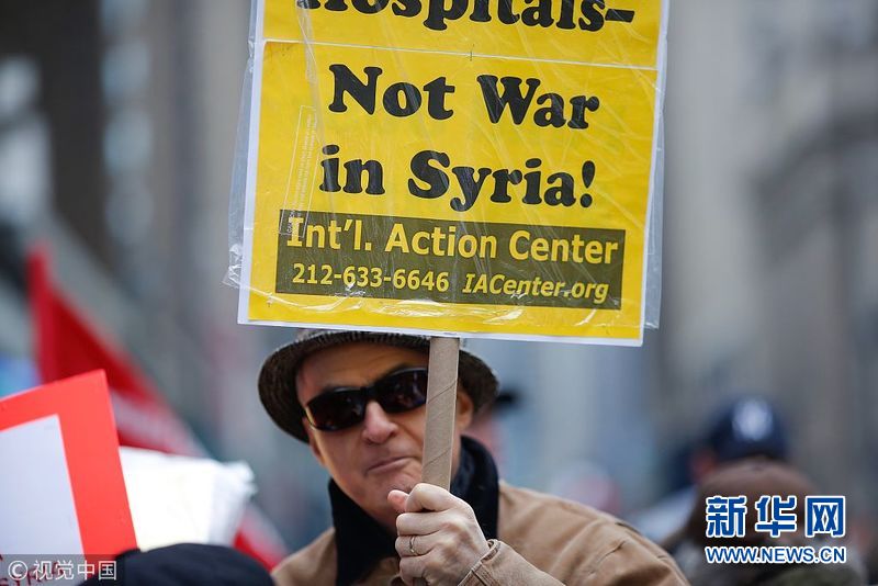 4月15日,美國(guó)紐約,民眾舉行反戰(zhàn)游行,抗議美英法聯(lián)軍襲擊敘利亞。(圖片來(lái)源:視覺(jué)中國(guó))