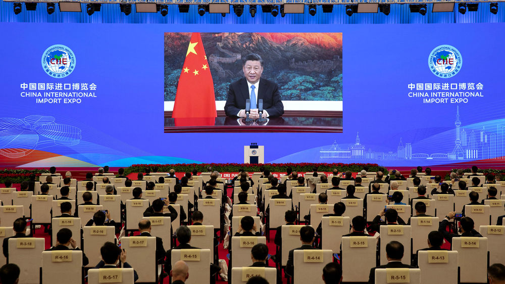 11月4日晚,習(xí)近平在第三屆中國(guó)國(guó)際進(jìn)口博覽會(huì)開幕式上以視頻方式發(fā)表主旨演講。新華社記者 黃敬文 攝