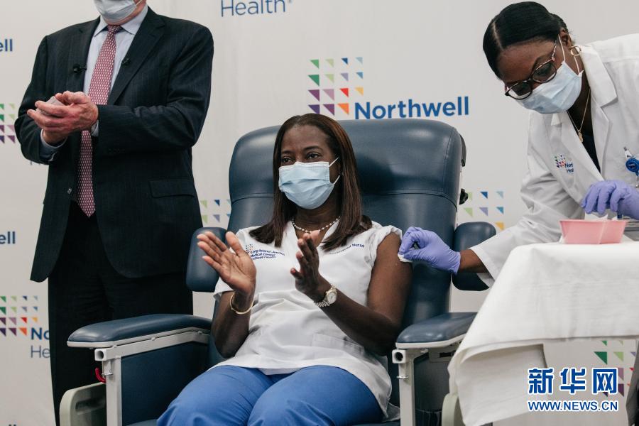 當(dāng)天上午,紐約長(zhǎng)島猶太醫(yī)療中心重癥監(jiān)護(hù)室護(hù)士桑德拉·琳賽最先接種了疫苗,成為紐約州首名疫苗接種者,也是全美首批疫苗接種者之一。